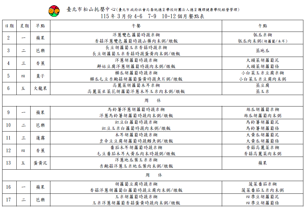 115年03月 4-12個月餐點表