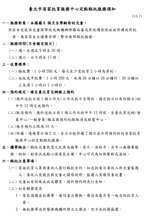 居家服務中心定點臨托服務須知